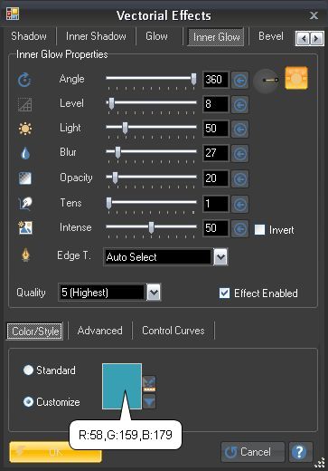 Next click on the Inner Glow card index, on the Inner Glow dialog box set up the values as shown (figure no.6 & 7)