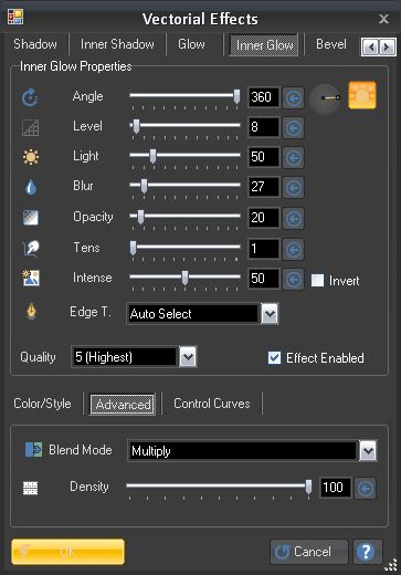Next click on the Inner Glow card index, on the Inner Glow dialog box set up the values as shown (figure no.6 & 7)